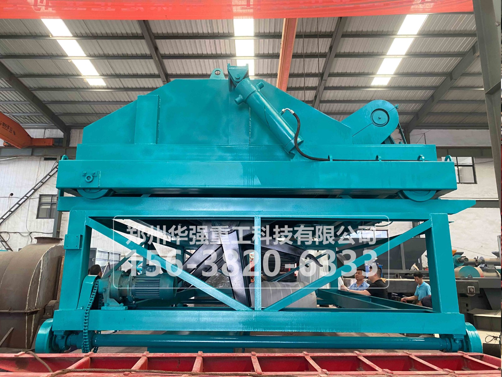 槽式翻堆機(jī)由傳動(dòng)裝置、提升裝置、行走裝置、翻堆裝置、轉(zhuǎn)移車等主要部件組成。電動(dòng)機(jī)直接將動(dòng)力傳給擺線針輪減速器經(jīng)鏈輪至翻堆滾筒,滾筒上的攪拌槳葉呈螺旋分布??蓪l(fā)酵槽內(nèi)的物料翻轉(zhuǎn)攪拌移動(dòng)至0.2-1m遠(yuǎn)的位置,起到翻堆速度快、攪拌均勻的效果,從而達(dá)到物料與空氣的充分接觸。